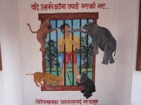 ←壁に書かれた注意書きの絵☆ ネパール語なので 全くわかりませんが 柵に手を触れるなと いうことですね! サルに髪の毛ひっぱられるわ 象の鼻で吸われるわ えらいこっちゃです(笑) |